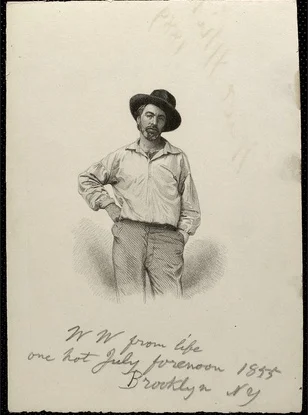Engraved frontispiece from Leaves of Grass, based on a daguerreotype of Walt Whitman made by artist Gabriel Harrison